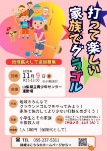 青少年センターでは、11月9日(日)に「打って楽しい家族でグラゴル」を開催します。